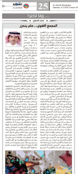 بداية «المجمع اللغوي على الشبكة العالمية» تسعد الجميع، وتدعو كل القطاعات لإفساح المجال للمبادرات الفردية التي يقودها المجتمع المدني لخدمة الثقافة والحضارة العربية وتعزيز تآخيها ووعيها بالتحديات المعاصرة خاصة في مجال اللغة العربية التي تخوض معتركاً لا يهدأ، وتتطلب نمواً يستجيب للثورة المعرفية ووسائط التقنية، ونقل المعلومات، وطبيعة الأجيال الجديدة وحاجاتها التعليمية.