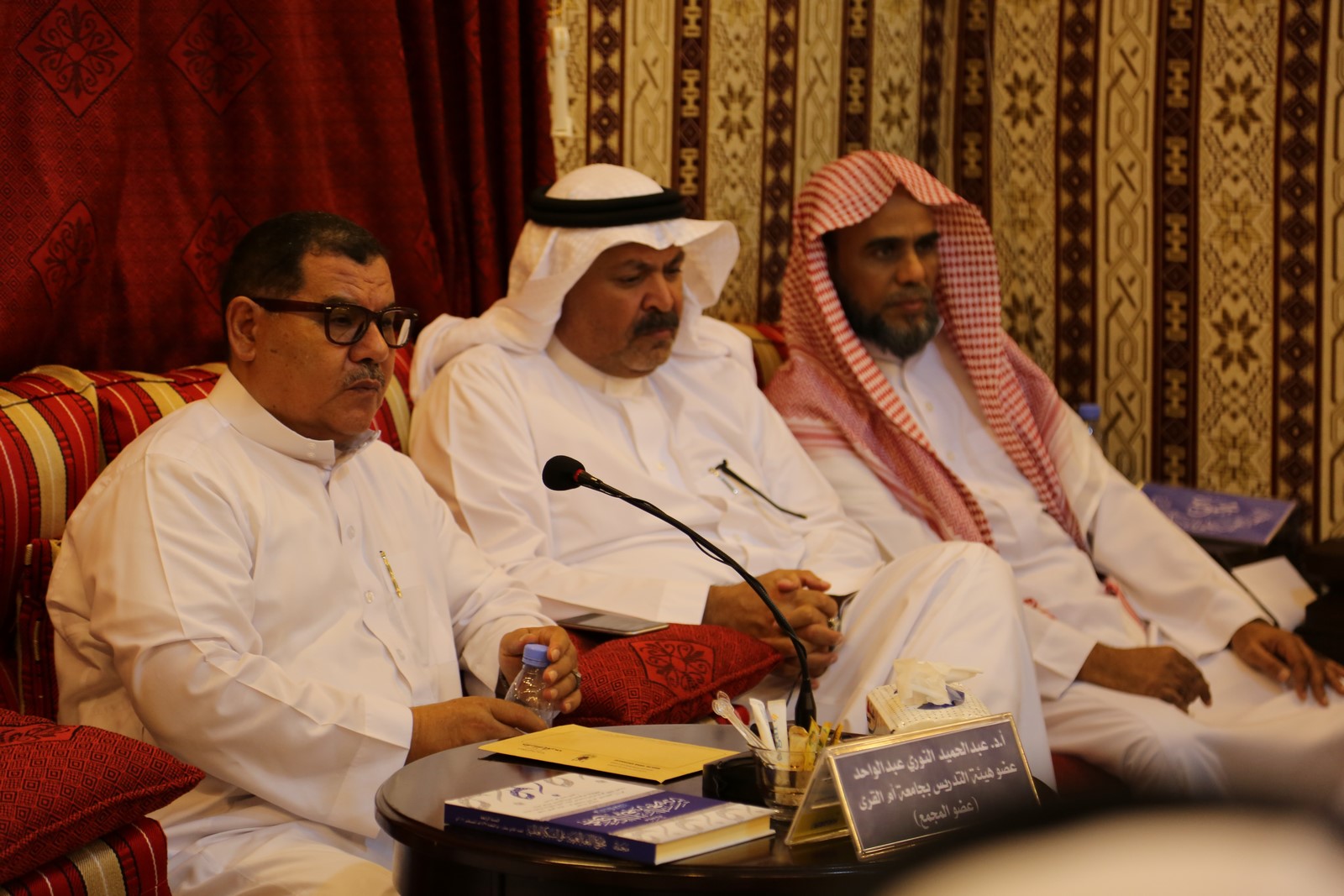 ثم عرَّف المقدِّم بالضيف المحاضر، وهو عضو المجمع وهيئةِ التدريس بجامعة أم القرى، الأستاذ الدكتور عبدالحميد عبد الواحد النوري، تونسي الجنسية، ولد سنة 1954م بقابس في تونس، حاصل على الدكتوراه في تخصص اللغة العربية (نحو/ صرف ولسانيات)، ويعمل في جامعة صفاقس بتونس، ملحق حاليا بجامعة أم القرى في مكة.