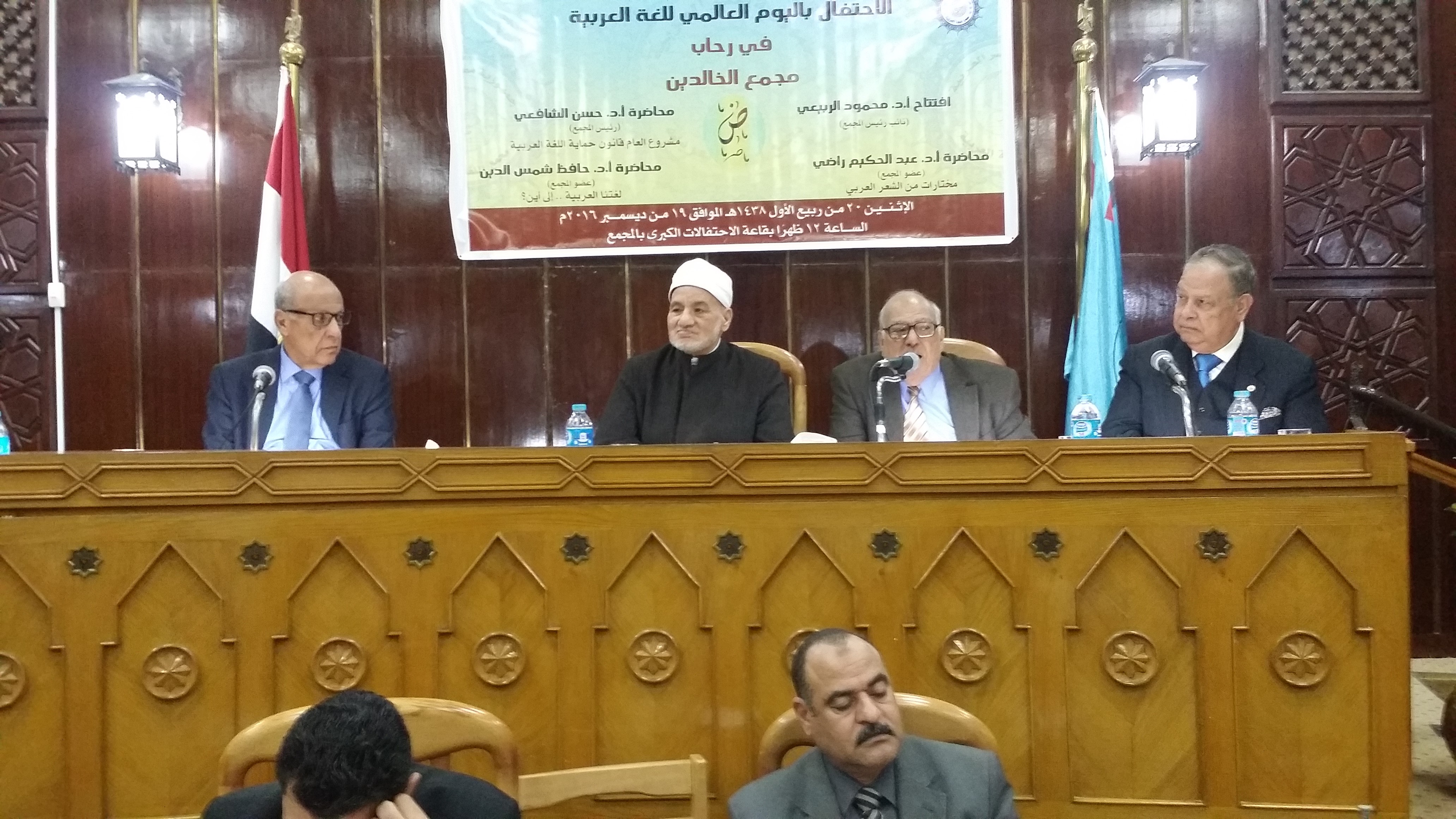 عقد مجمع اللغة العربية بالقاهرة يوم أمس الاثنين 20 من ربيع الأول 1438 هـ، 19 من ديسمبر 2014م، بقاعة الاجتماعات الكبرى بدار المجمع بحي الزمالك، عقد احتفالًا باليوم العالمي للغة العربية؛ حيث يحتفل العالم يوم 18 ديسمبر من كل عام، بيوم الأمم المتحدة للغة العربية أو اليوم العالمي للغة العربية وهو ما يوافق ذكري صدور قرار الجمعية العامة للأمم المتحدة القرار رقم 3190(د-28) بشأن اعتبار اللغة العربية لغة رسمية، إلى جانب اللغات الستة: الإنجليزية والفرنسية والروسية والصينية والإسبانية.