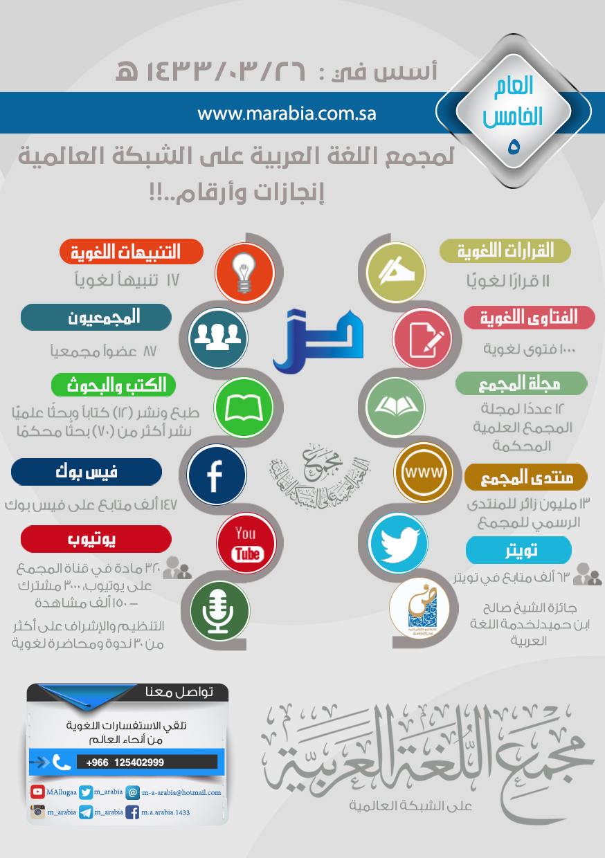 > الأخبار > أخبار المجمع والمجمعيين > #العام_الخامس لـ #مجمع_اللغة_العربية_على_الشبكة_العالمية : إنجازاتٌ وأرقام..!!