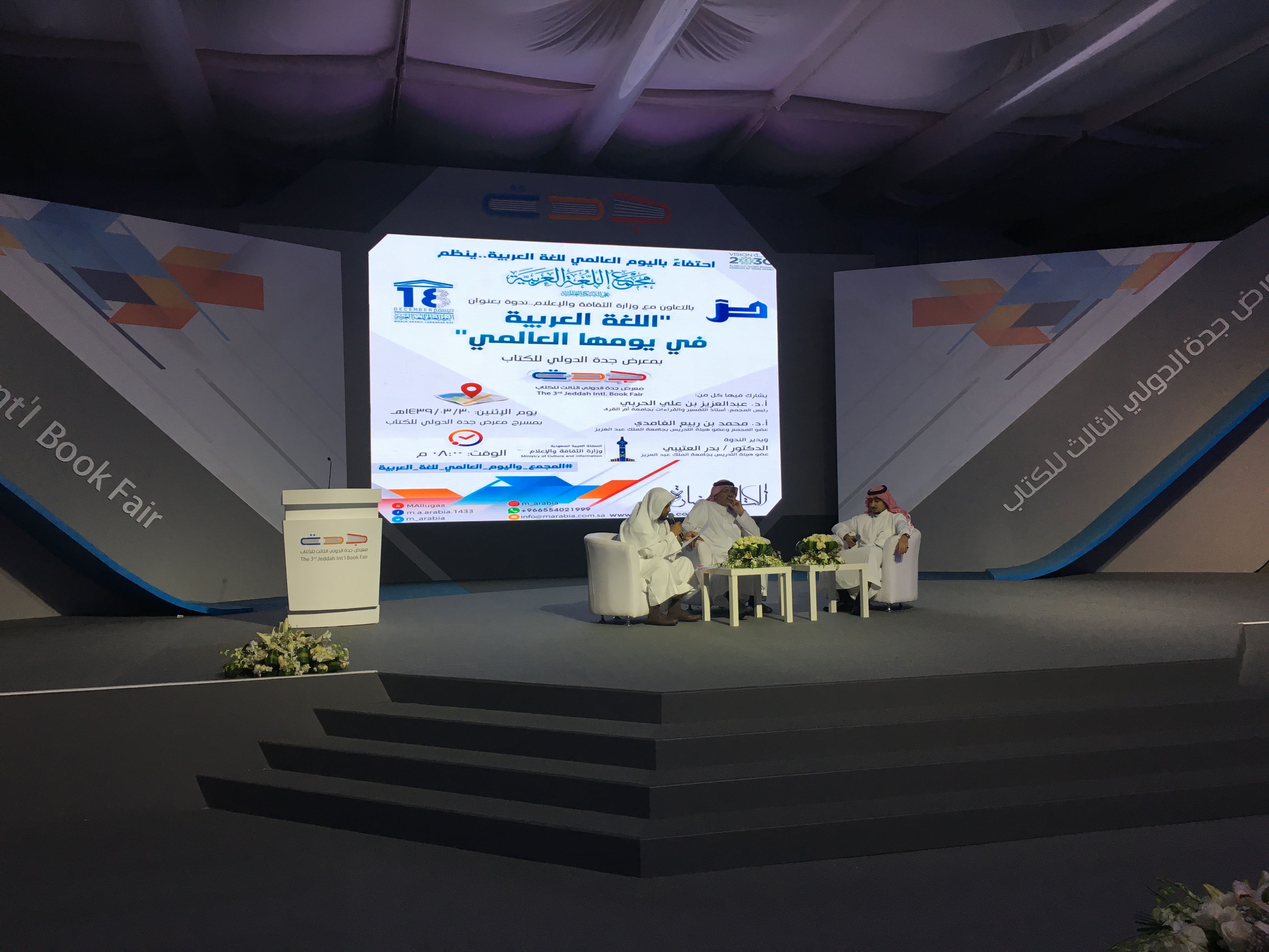 احتفاءً باليوم العالمي للغة العربية عقد مجمعُ اللغة العربية على الشبكة العالمية بالتعاون مع وزارة الثقافة والإعلام ندوة في مسرحِ معرِضِ جدةَ الدولي للكتاب، عنوانُها “اللغةُ العربية في يومها العالمي” شارك فيها كلٌّ من رئيسِ المجمع الأستاذِ الدكتورِ عبدِالعزيز بنِ عليٍّ الحربيِّ، والأستاذِ الدكتورِ محمدِ بنِ ربيعٍ الغامديِّ. وأدار الندوة الدكتور بدر العتيبي.