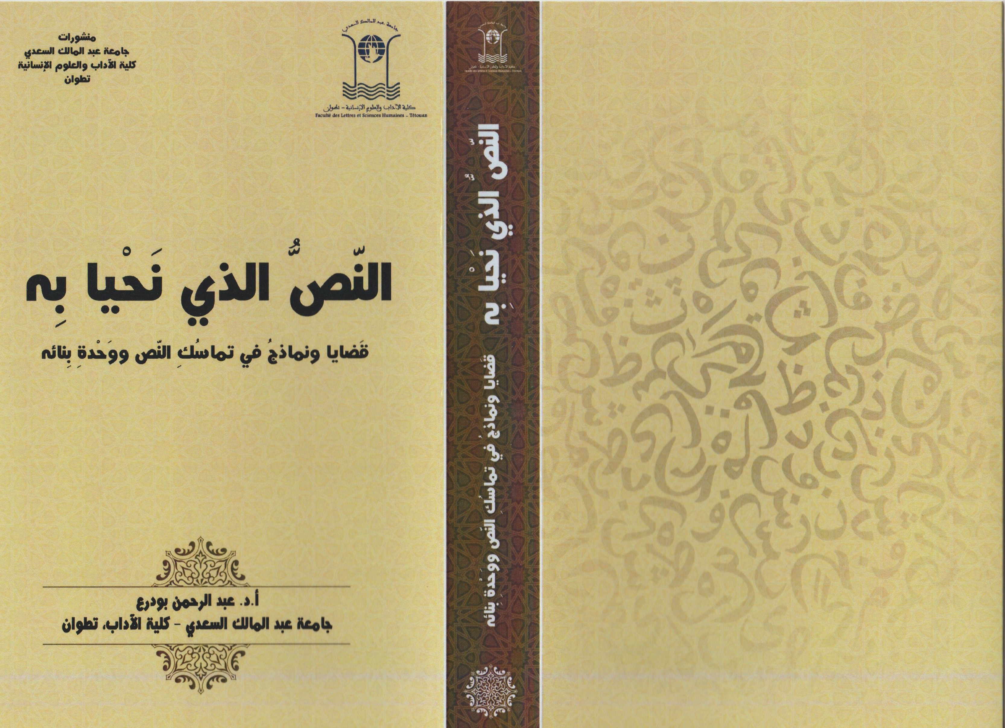 صدَرَ للأستاذ الدكتور عبد الرحمن بودرع، عضو مجمع اللغة العربية على الشبكة العالَمية ونائب رَئيسه، كتابٌ جديدٌ، بعنوان: “النص الذي نَحْيَا به، قَضايا ونَماذجُ في تَماسُك النص ووحدة بنائه” من منشورات جامعة عبد المالك السعدي، كلية الآداب تطوان، المغرب، سنة 2018.