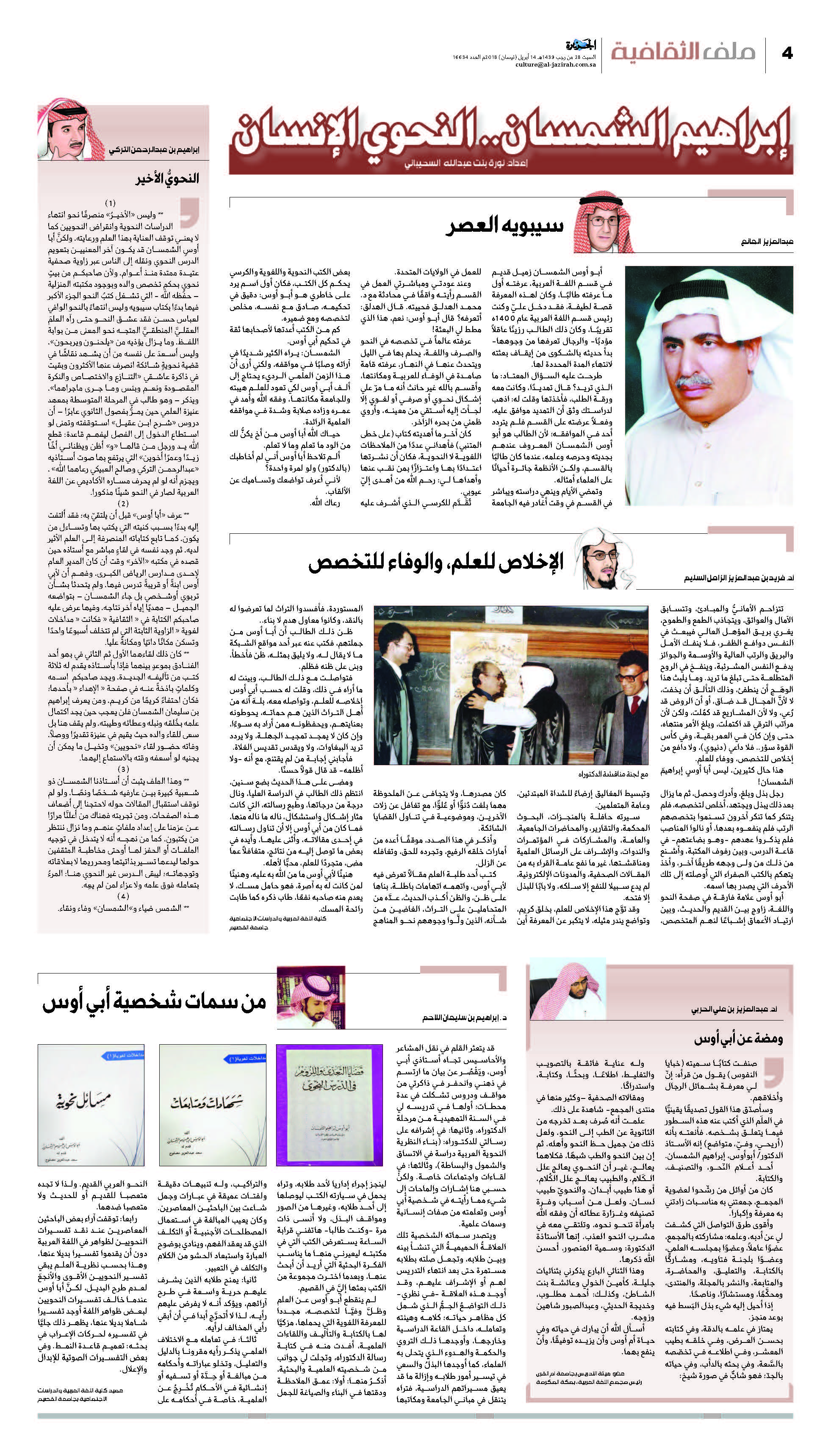 (الجزيرة الثقافية) تخصص عددًا تكريميًّا للأستاذ الدكتور أبي أوس الشمسان عضو المجمع