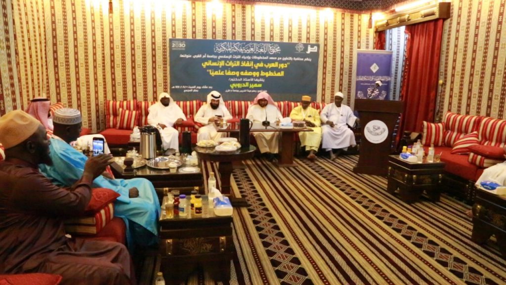 وقد التقى الوفد رئيس المجمع الأستاذ الدكتور عبدالعزيز بن علي الحربي، الذي ألقى كلمة أوصى فيها بالدفاع عن العربية ونوه بما تبذله المملكة من جهود في ذلك.
