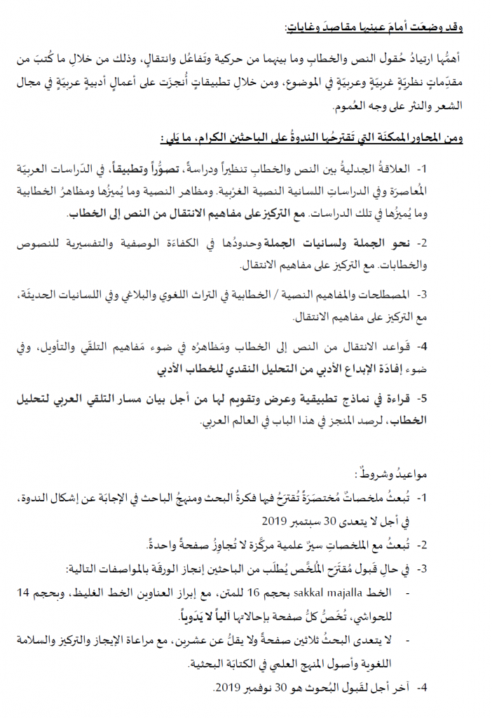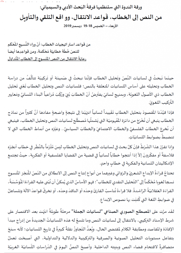 “من النص إلى الخطاب قواعد الانتقال، وواقع التلقي والتأويل” ندوة بكلّية الآداب بتطوان، المغرب