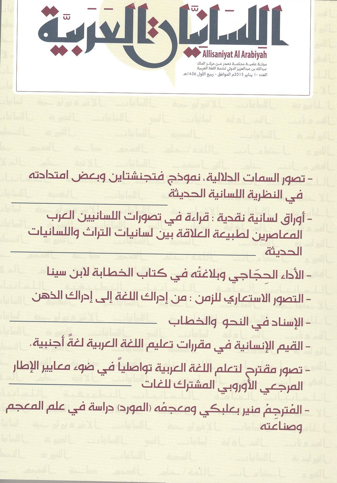 مركز الملك عبدالله لخدمة اللغة العربية يصدر (مجلة اللسانيات العربية)