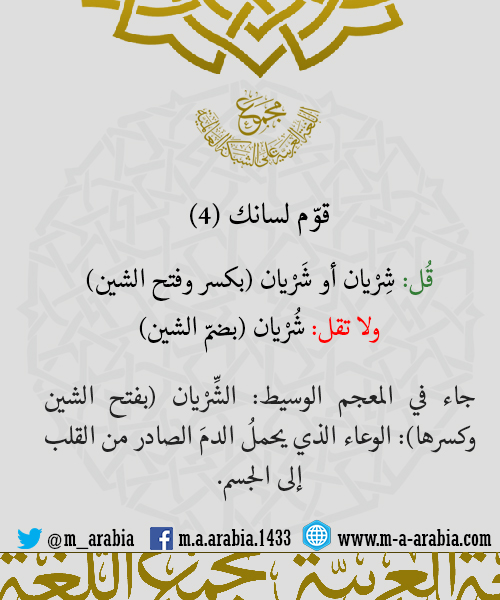 قوّم لسانك (4) - قُل: شِرْيان أو شَرْيان ولا تقل: شُريان