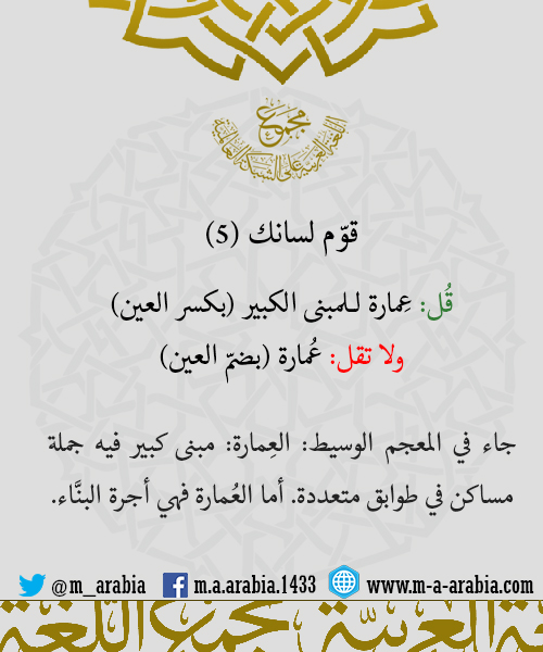 قوّم لسانك (5) - قُل: عِمارة للمبنى الكبير ولا تقل: عُمارة