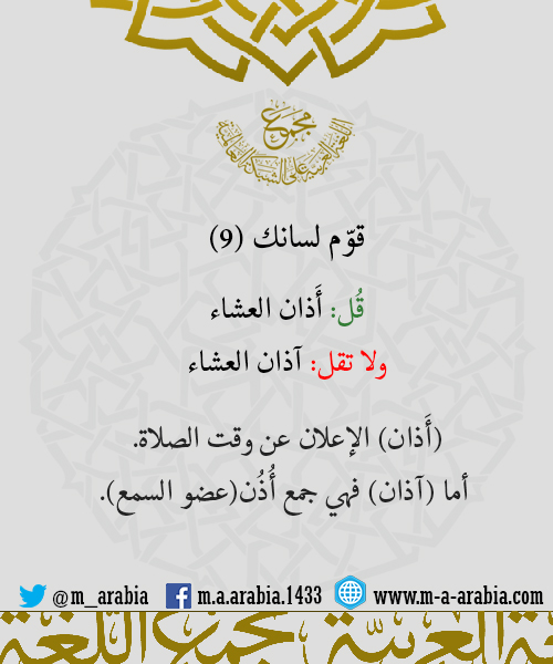 قوّم لسانك (9) - قُل: أذان العشاء ولا تَقُل: آذان العشاء