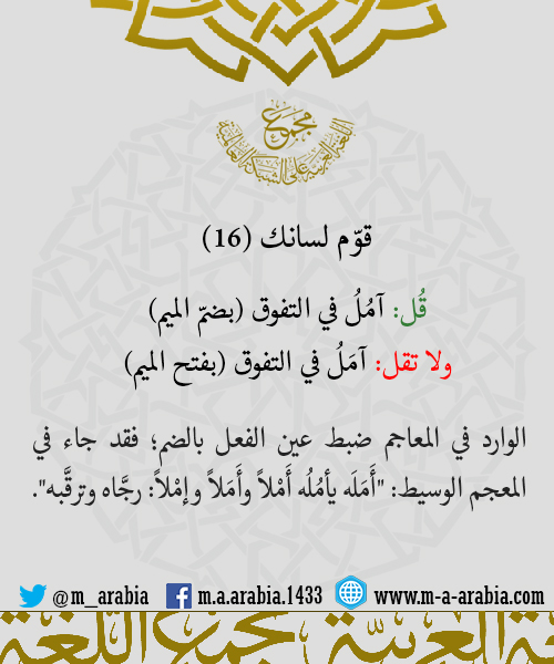 قوّم لسانك (16) - قُل: آمُلُ في التفوّق ولا تقل: آمَلُ