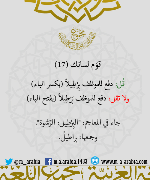 قوّم لسانك (17) - قُل: دفع للموظف بِرْطيلاً ولا تقل: بَرْطيلاً