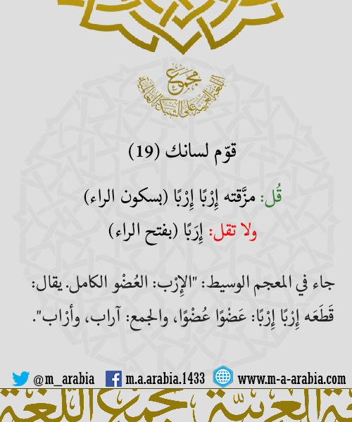 قوّم لسانك (19) - قُل: مزَّقته إِرْبًا إِرْبًا ولا تقل: إِرَبًا