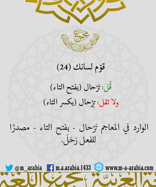 قوّم لسانك (24) - قُل: تَرْحال ولا تقل: تِرْحال