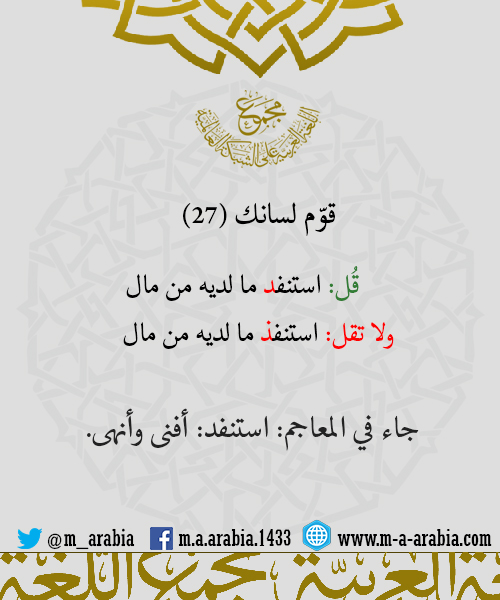 قوّم لسانك (28) - قُل: استنفد ما لديه من مال ولا تقل: استنفذ