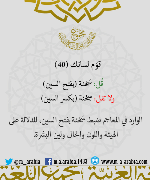 قوّم لسانك (40) - قُل: سَحْنة ولا تقل: سِحْنة