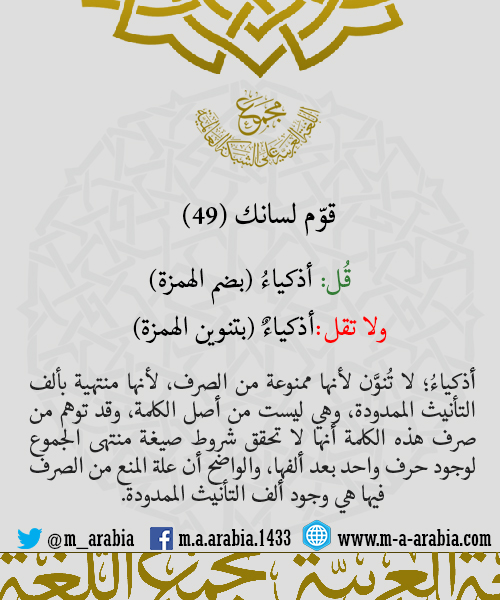 قوّم لسانك (49) - قُل: أذكياءُ ولا تقل: أذكياءٌ