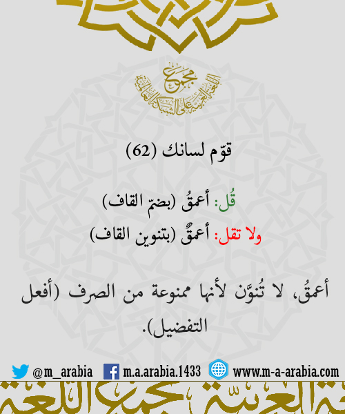 قوّم لسانك (62) - قُل: أعمقُ، ولا تقل: أعمقٌ.