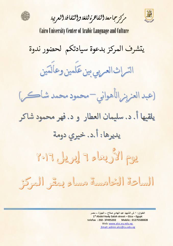 ندوة مركز جامعة القاهرة للغة والثقافة العربية يقيم ندوة احتفال بالأستاذ شاكر