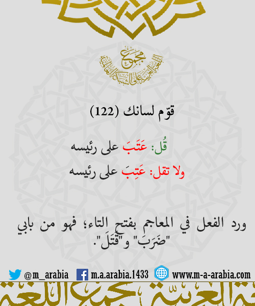 قوّم لسانك (122) - قُل: عَتَبَ على رئيسه، ولا تقل: عَتِبَ