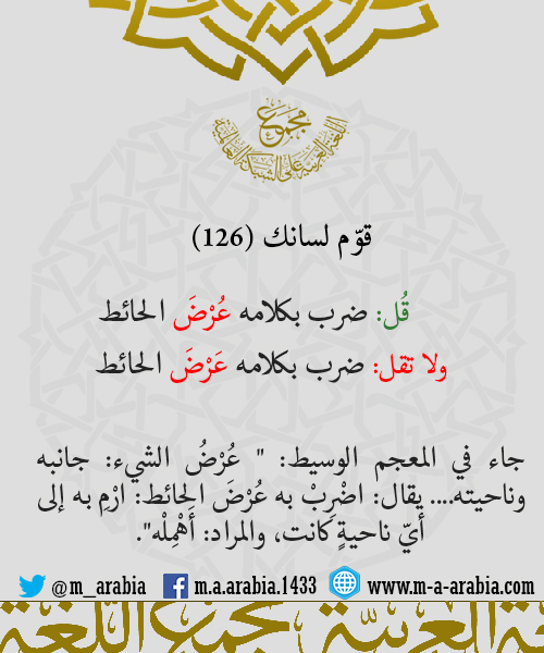 قوّم لسانك (126) - قُل: ضرب بكلامه عُرْضَ الحائط، ولا تقل: عَرْضَ