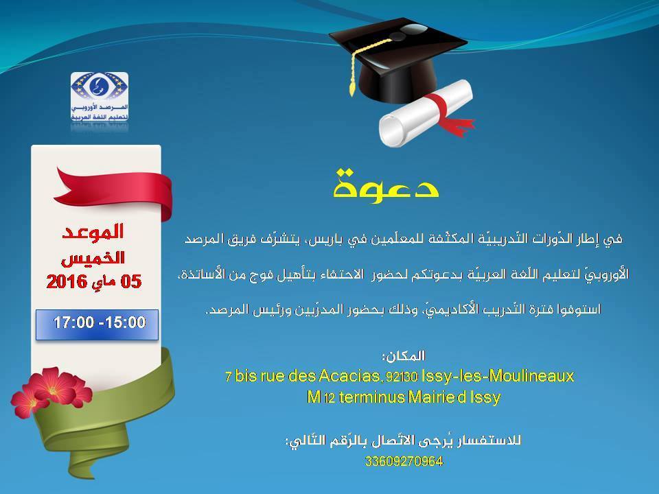 دعوة لحضورالاحتفاء بتخرّج الأساتذة المتدربّين بالمرصد الأوروبّي لتعليم العربية