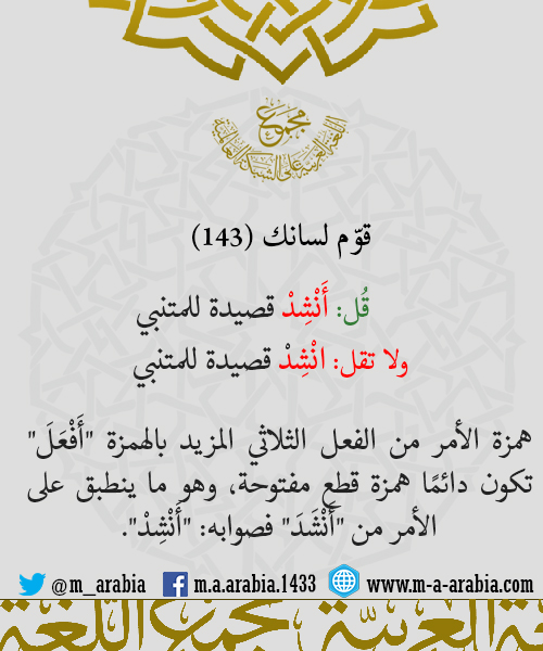 قوّم لسانك (143) - قُل: أَنْشِدْ قصيدة للمتنبي، ولا تقل: انْشِدْ