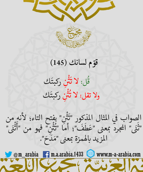 قوّم لسانك (145) - قُل: لا تَثْنِ ركبتَك، ولا تقل: لا تُثْنِ