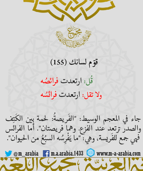 قوّم لسانك (155) - قُل: ارتعدت فرائصُه، ولا تقل: فرائسُه