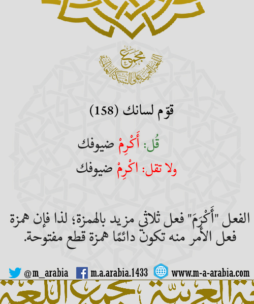 قوّم لسانك (158) - قُل: أَكْرِمْ ضيوفك، ولا تقل: اكْرِمْ