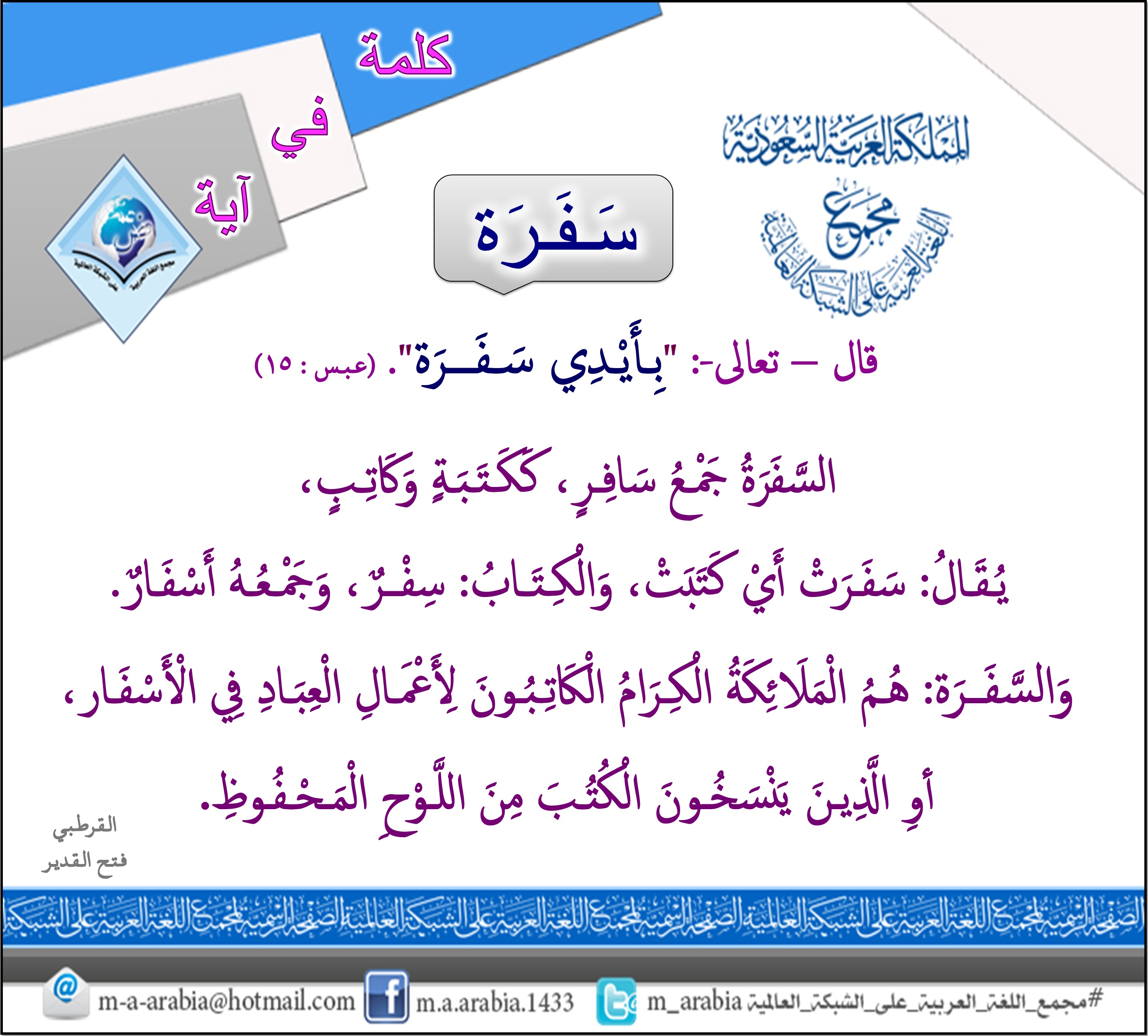 #كلمة في آية: (سَفَرَة) في قوله – تعالى-: "بِـأَيْـدِي سَـفَـــرَة"