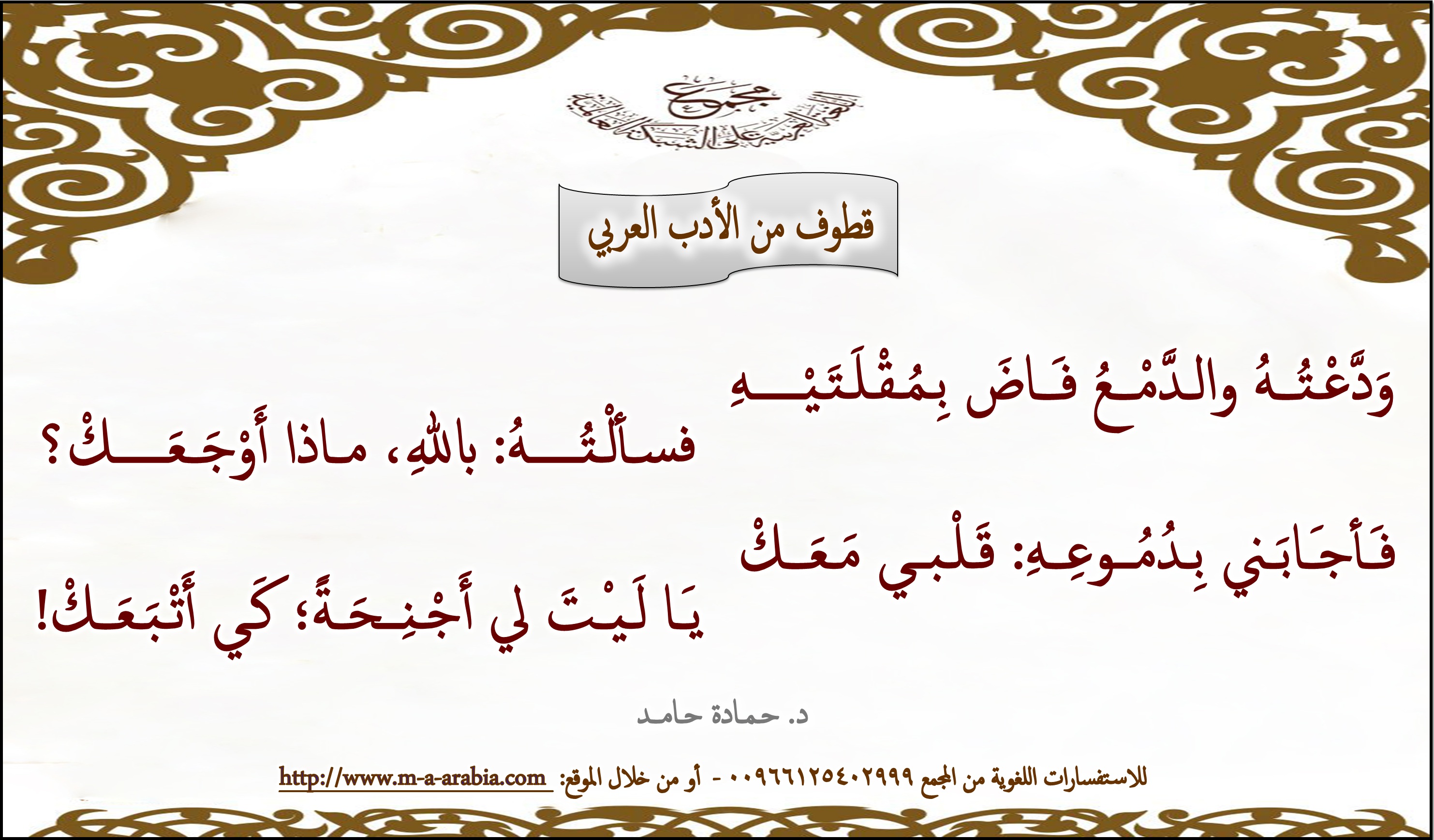 وَدَّعْـتُــهُ والـدَّمْــعُ فـَــاضَ بـمُـقْـلَـتَـيْــهِ - د. حمادة حامد
