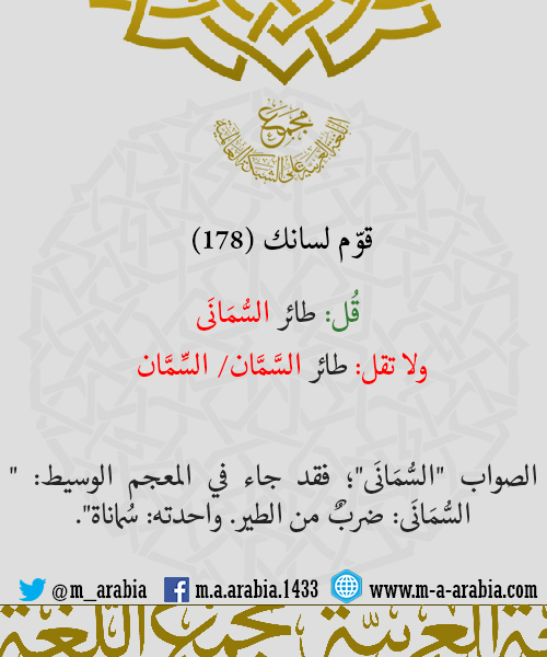 قوّم لسانك (178) - قُل: طائر السُّمَانَى، ولا تقل: طائر السَّمَّان/ السِّمَّان