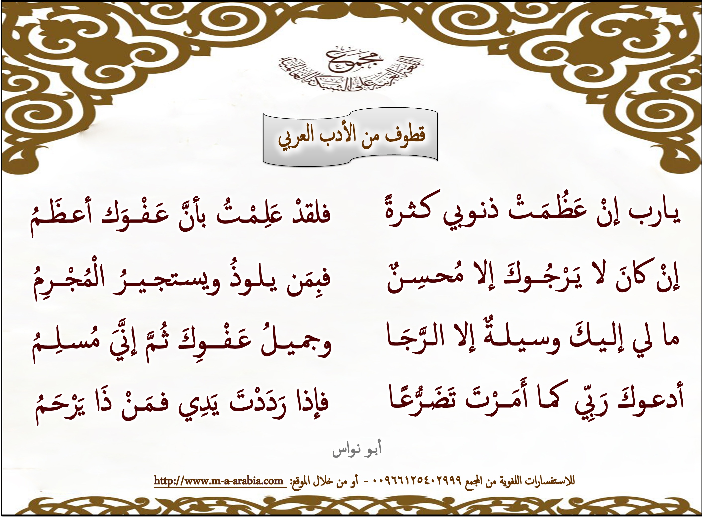 يـارب إنْ عَظُـمَـتْ ذنـوبي كـثـرةً..