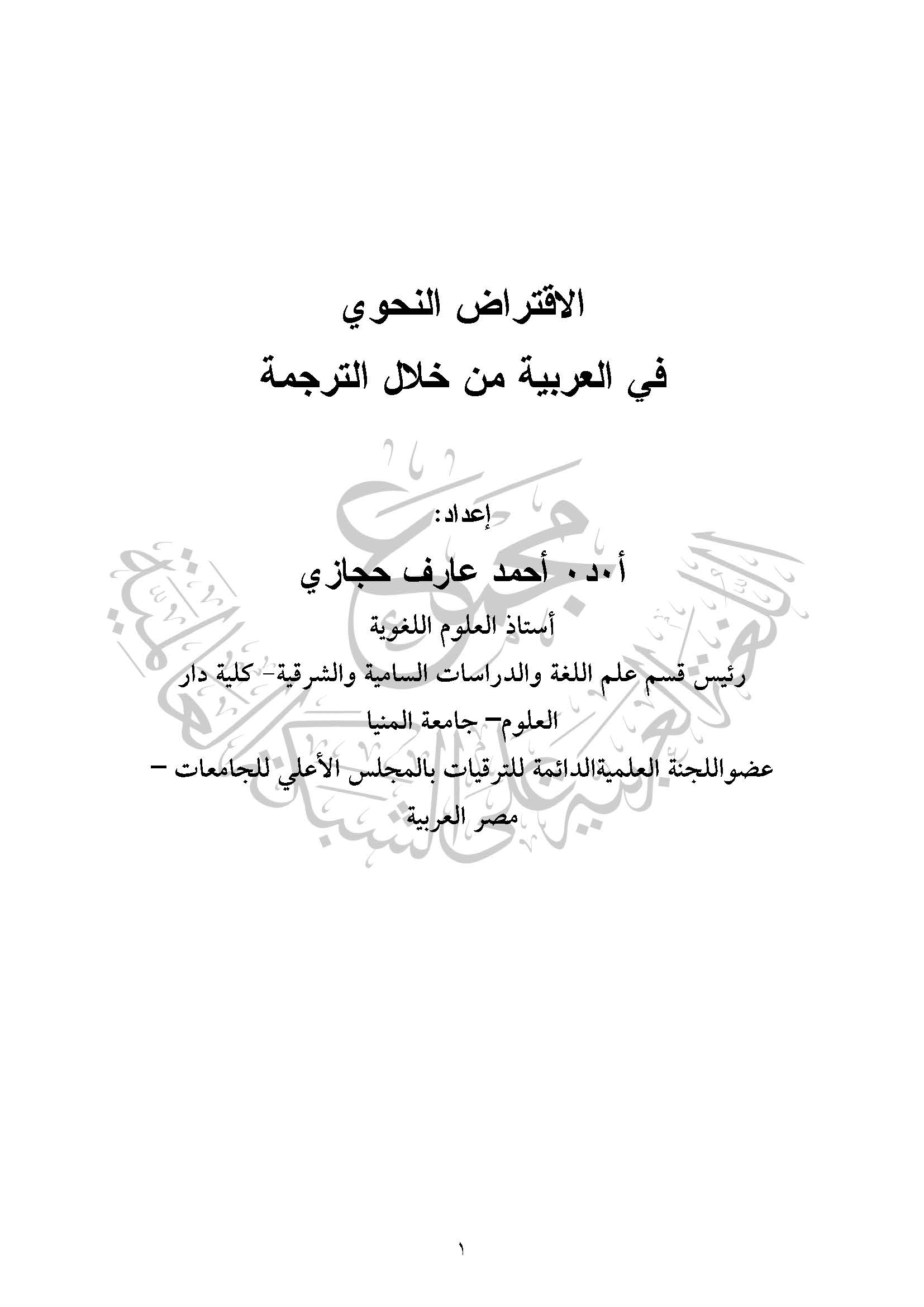 #بحث: الاقتراض النحوي في العربية من خلال الترجمة - أ.د. أحمد عارف حجازي