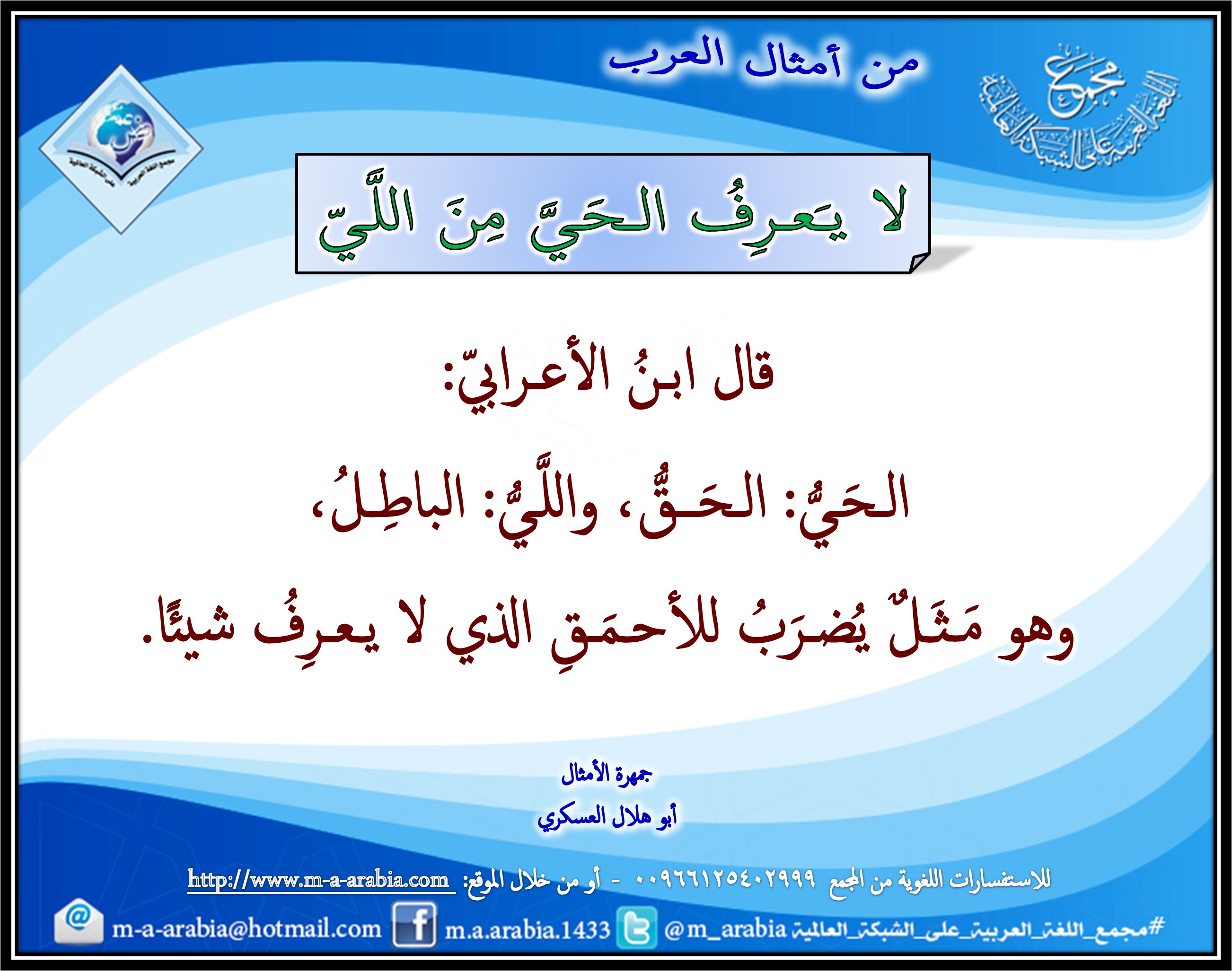 #من_أمثال_العرب: لا يـَعـرِفُ الـحَـيَّ مِنَ اللَّـيّ