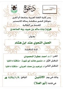 مناقشة ماجستير بجامعة أم القرى: الحمل النحوي عند ابن هشام