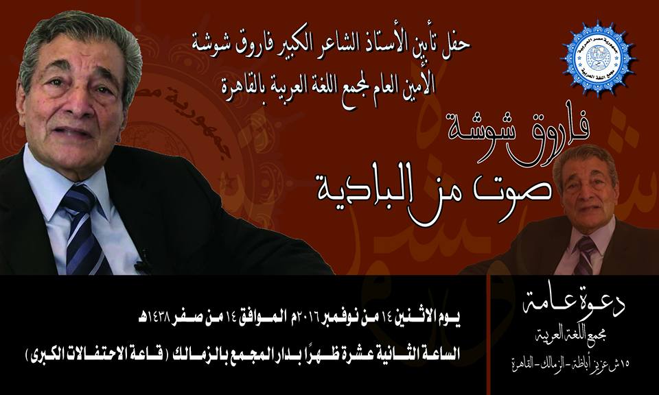 تأبين الأستاذ الشاعر الكبير الراحل فاروق شوشة بمقر مجمع اللغة العربية بالقاهرة