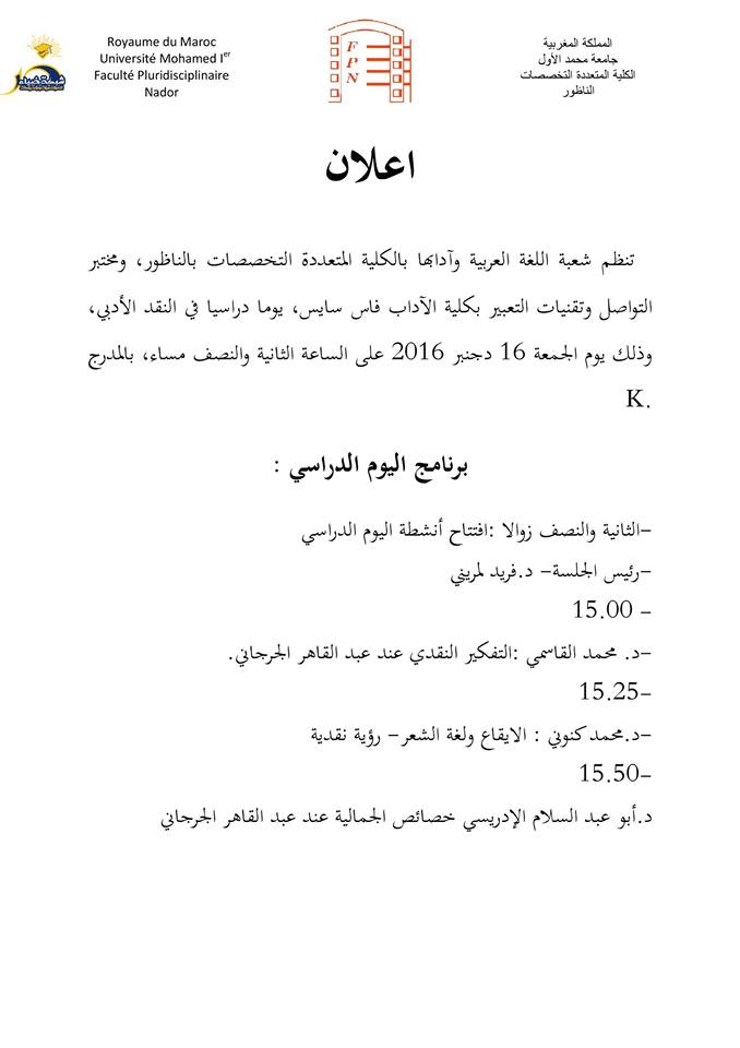يوم دراسي في النقد الأدبي بجامعة محمد الأول - المغرب