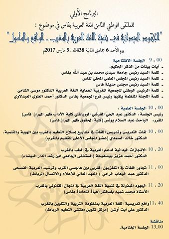 برنامج الملتقى الوطني الثامن الذي تنظمه الجمعية المغربية لحماية اللغة العربية فرع فاس في موضوع: