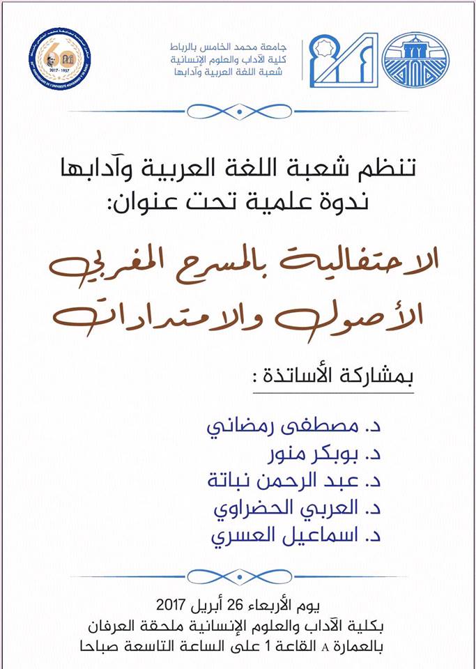 بمناسبة الاحتفال بالذكرى الستين لتأسيس كلية الآداب والعلوم الإنسانية بجامعة محمد السادس بالمغرب؛ تتشرف شعبة اللغة العربية وآدابها بدعوتكم لحضور الندوة العلمية في موضوع: