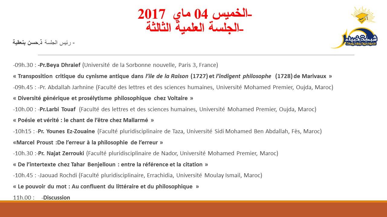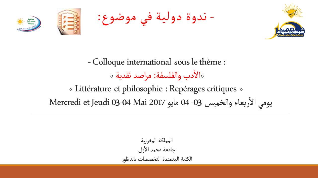 الأدب والفلسفة: مراصد نقدية.. ندوة دولية بجامعة محمد الأول - المغرب 03 ، 04 مايو 2017