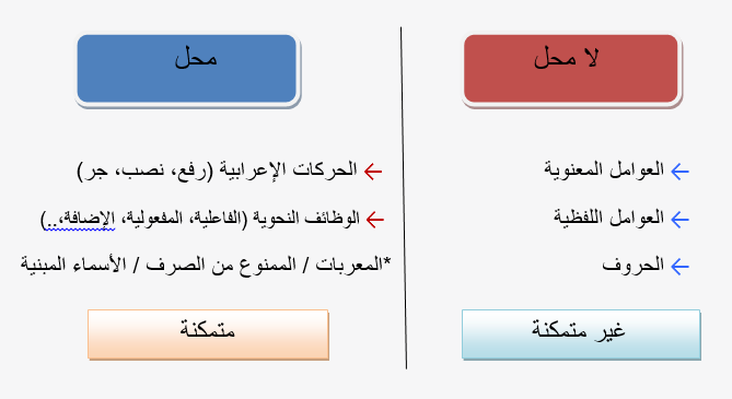 والذي يُحدد اللامحل هو الفعلُ التامُّ المتصرف، أما ما يحدد المحلَّ، فهو الاسم المتمكن الأمكن.