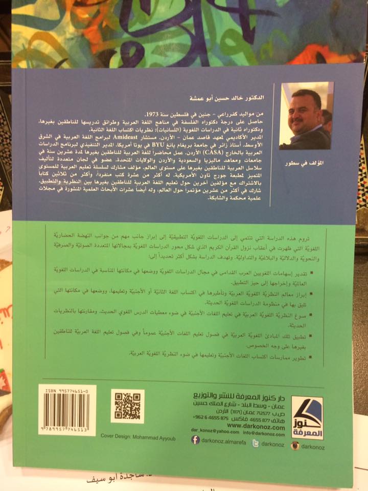 صدر حديثًا: كتاب "نظريات اكتساب اللغة الثانية في الفكر اللغوي العربي وتطبيقاتها المعاصرة" للدكتور خالد حسين أبو عمشة أستاذ اللغويات التطبيقية ومدير معهد قاصد لتعليم اللغة العربية للناطقين بغيرها - الأردن عن دار كنوز المعرفة- الأردن