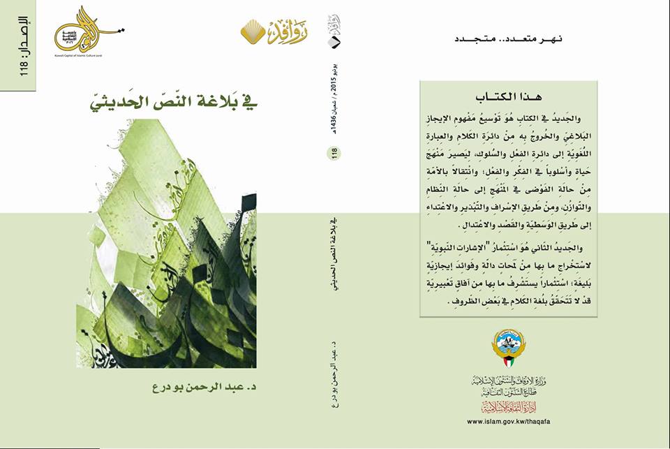 صدر حديثًا كتاب "في بلاغة النص الحَديثي"، للأستاذ الدكتور عبدالرحمن بودرع، سلسلة كتاب روافد، الإصدار 118، الكويت.