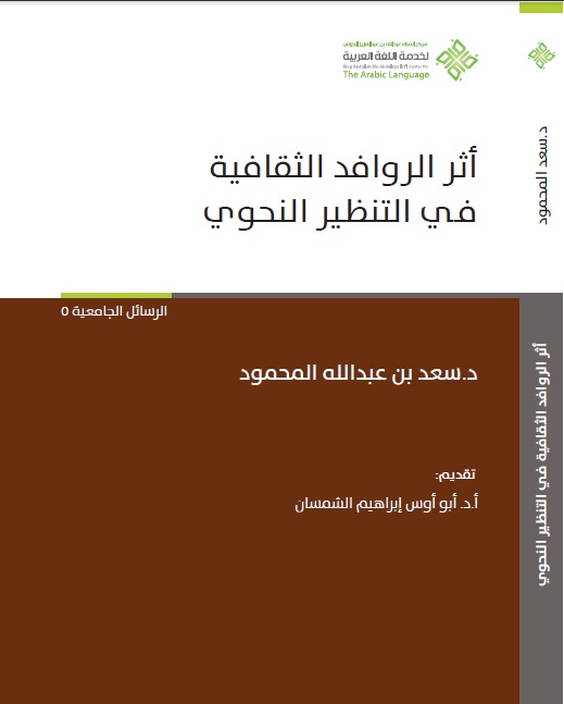 وأوضح الأمين العام لمركز الملك عبدالله بن عبدالعزيز الدولي لخدمة اللغة العربية الدكتور عبدالله بن صالح الوشمي أن المركز يعمل ضمن برنامج النشر على إطلاق مجموعة من الإصدارات العلمية التي قام بجدولتها والتخطيط لها منذ وقت مبكر، حيث أصدر مؤخرا كتاب (أثر الروافد الثقافية في التنظير النحوي) وهي رسالة علمية للباحث د.سعد بن عبدالله المحمود، قدم له أ.د. إبراهيم الشمسان، ويناقش في كتابه أربعة محاور، فجاء الفصل الأول لدراسة «أثر الروافد الثقافية في الأصول النحوية »، والفصل الثاني لدراسة «أثر الروافد الثقافية في المصطلح النحوي ومناهج التأليف »، والفصل الثالث لدراسة «أثر الروافد الثقافية في القاعدة النحوية »، والفصل الرابع لدراسة «أثر الروافد الثقافية في الشواهد والأمثلة النحوية »، حيث يرى الباحث أن قضية التأثير والتأثر في النحو العربي شغلت كثيرًا من الباحثين، وتبدت ملامحها مع بدء نشأة هذا العلم.