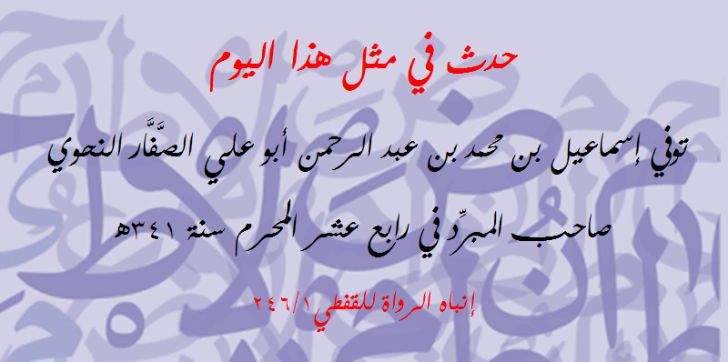 حدث في مثل هذا اليوم (48): وفاة أبي علي الصَّفَّار النحوي اللغوي