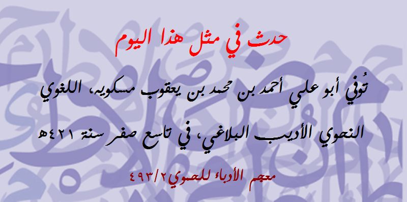 حدث في مثل هذا اليوم (68): وفاة أبي علي أحمد بن يعقوب مسكويه