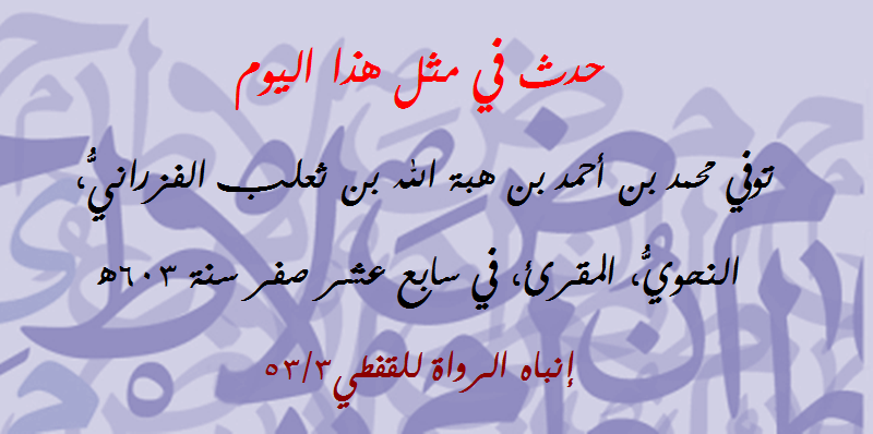 حدث في مثل هذا اليوم (75): توفي محمد بن أحمد بن هبة الله الفزْرَانِيُّ النحوي المقرئ