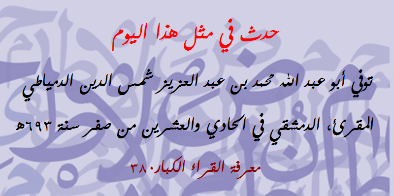 حدث في مثل هذا اليوم (78): توفي شمس الدين الدمياطي المقرئ الدمشقي