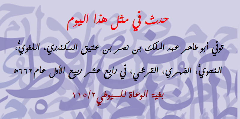 حدث في مثل هذا اليوم (94): توفي أبو طاهر السكندري النحوي اللغوي